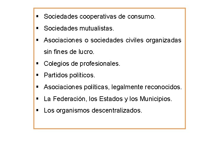 Personas morales sociedades y asociaciones sin fines de lucro. Como las sociedades o asociaciones civiles organizadas sin fines de lucro y autorizadas para recibir donativos en los teacuterminos de esta Ley que tengan como beneficiarios a personas sectores y regiones de escasos recursos. Sociedades o asociaciones de carcter civil sin fines de lucro y autorizadas para recibir donativos deducibles en los trminos de esta Ley dedicadas a la investigacin cientfica o tecnolgica que se encuentren inscritas en el Registro Nacional de.